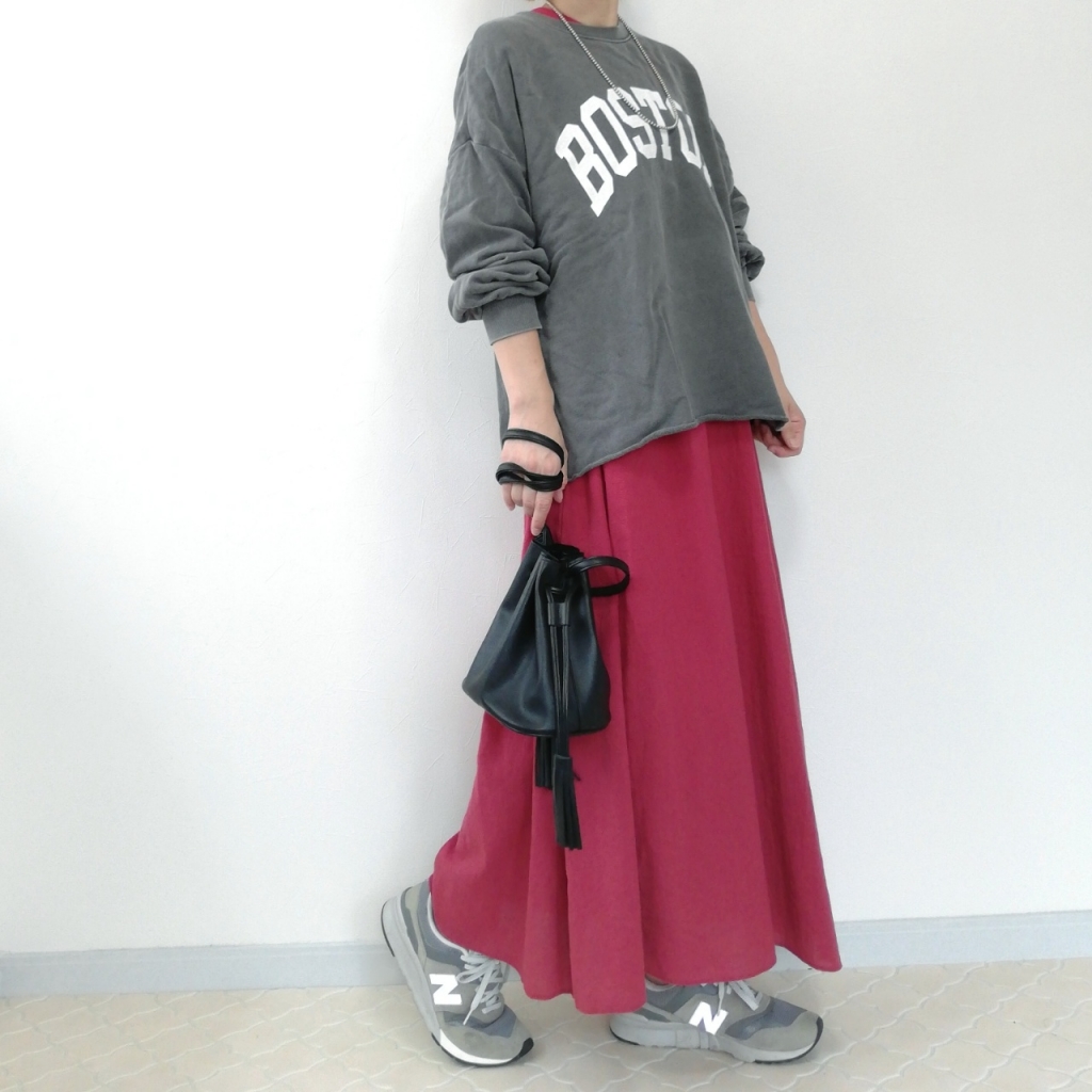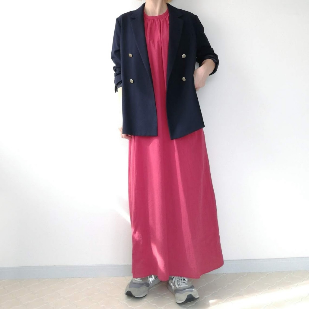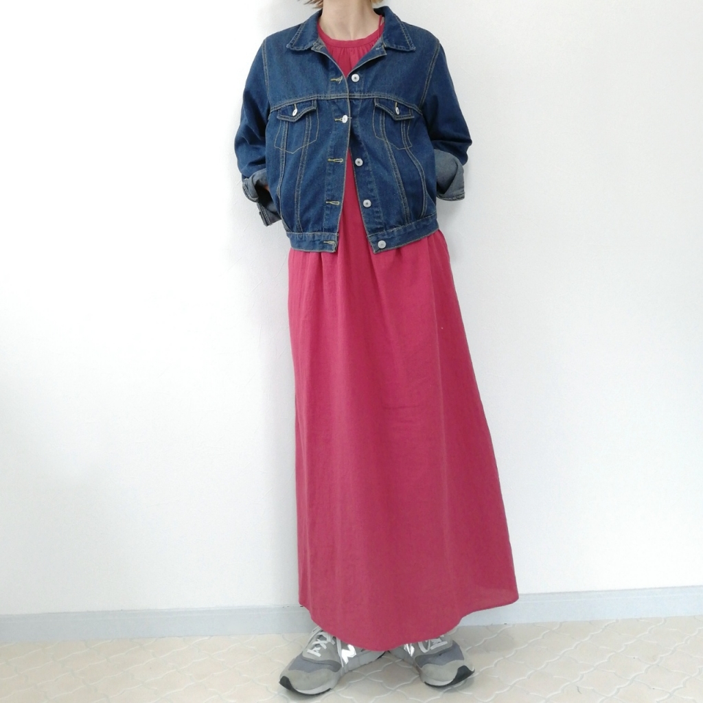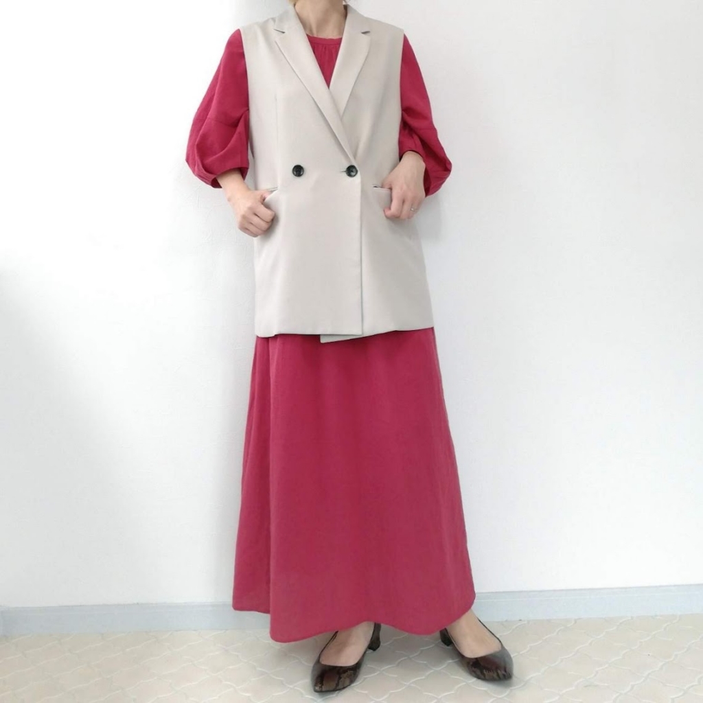赤ワンピの主張ひかえめになるので、トライしやすい!