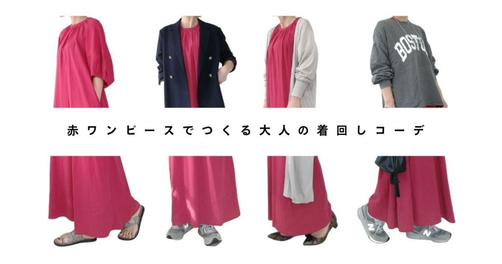 そこで今回は、筆者のお気に入り赤ワンピースを使って、着回しアイデアをご紹介します!